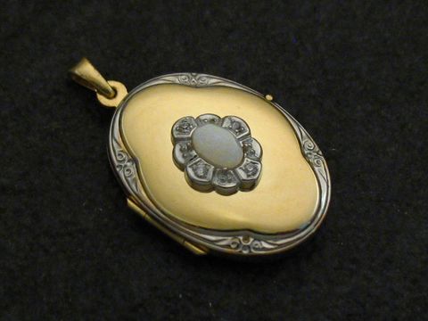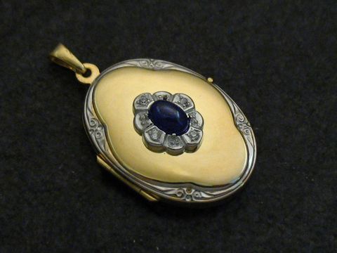 Königliche Cabochon Gold Medaillon - mit Stein und Zirkonia
