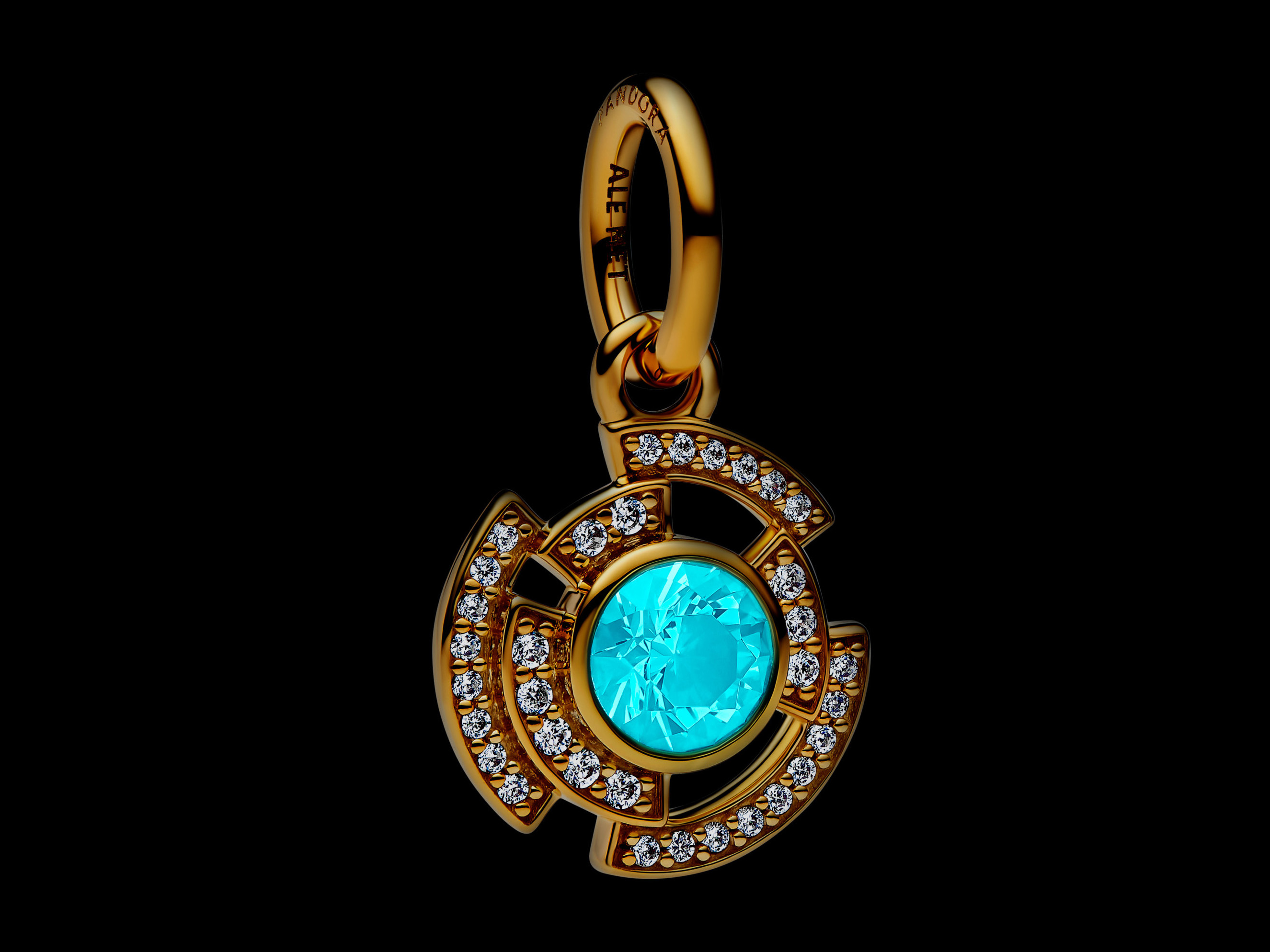 Pandora 764216C01 - Marvel Iron Man Arc Reaktor Charm - Gelbgold Vergoldung - Emaille Zirkonia Grün