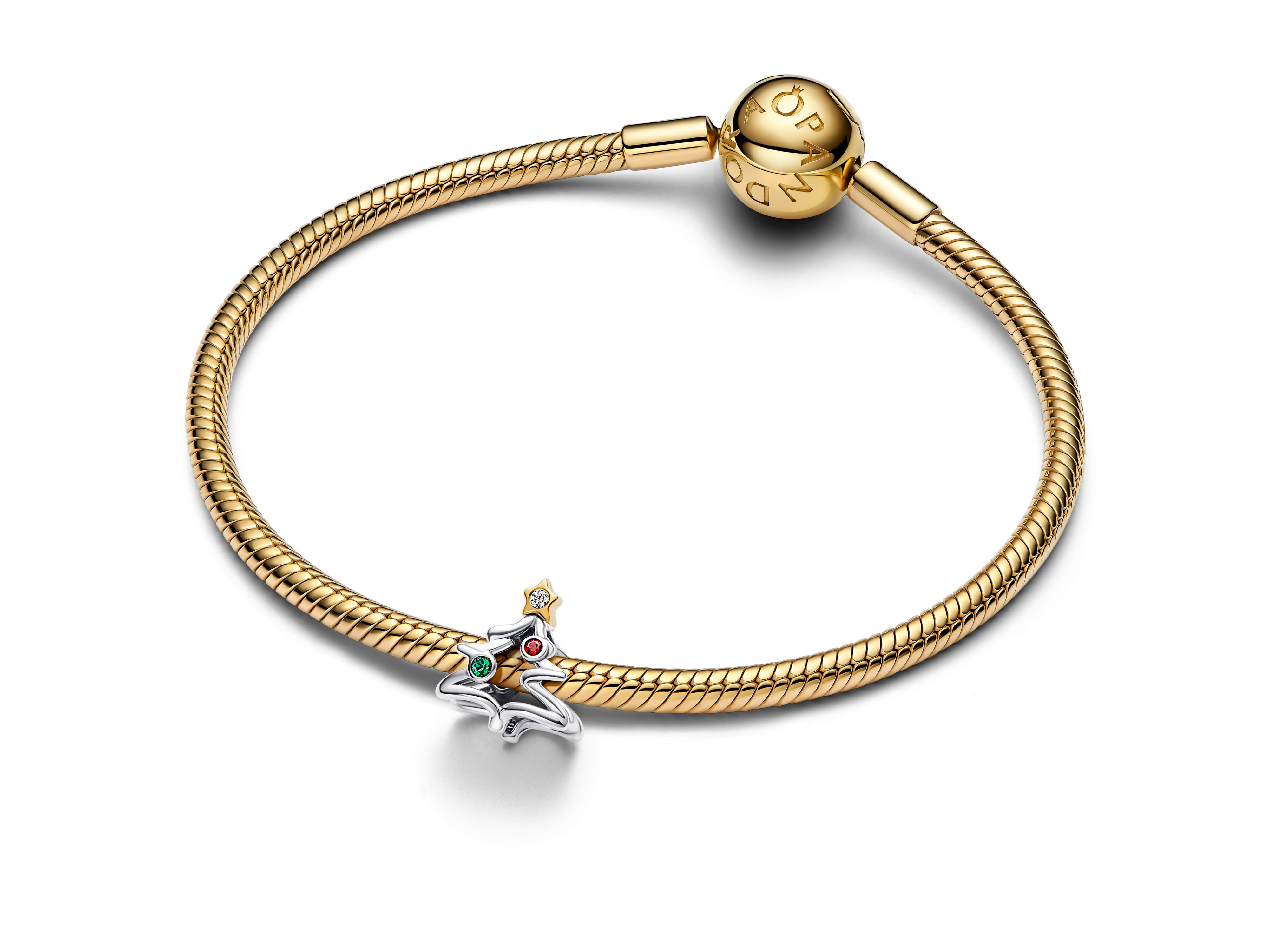 Original Pandora 764248C01 - Weihnachtsbaum Charm - Sterling Silber & Gelbgold Vergoldung auf Metalllegierung - Steinmix Rot