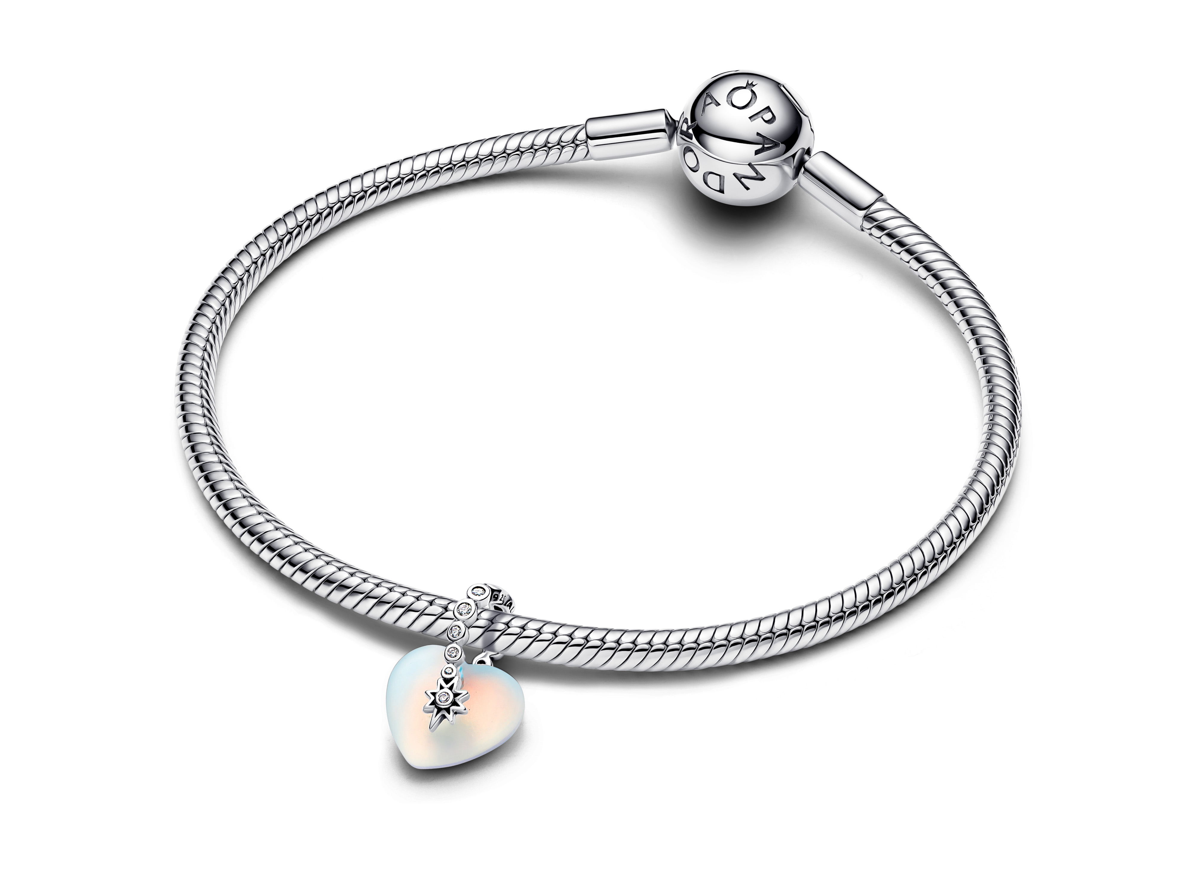 Ein Herz aus irisierendem Mondstein-Glas trifft auf eine Sternschnuppe. Dieses Charm aus Sterling-Silber und klaren Cubic Zirkonia symbolisiert Träume, Hoffnung und endlose Möglichkeiten. Lass es alleine strahlen oder kombiniere es mit anderen bedeutungsvollen Schmuckstücken.