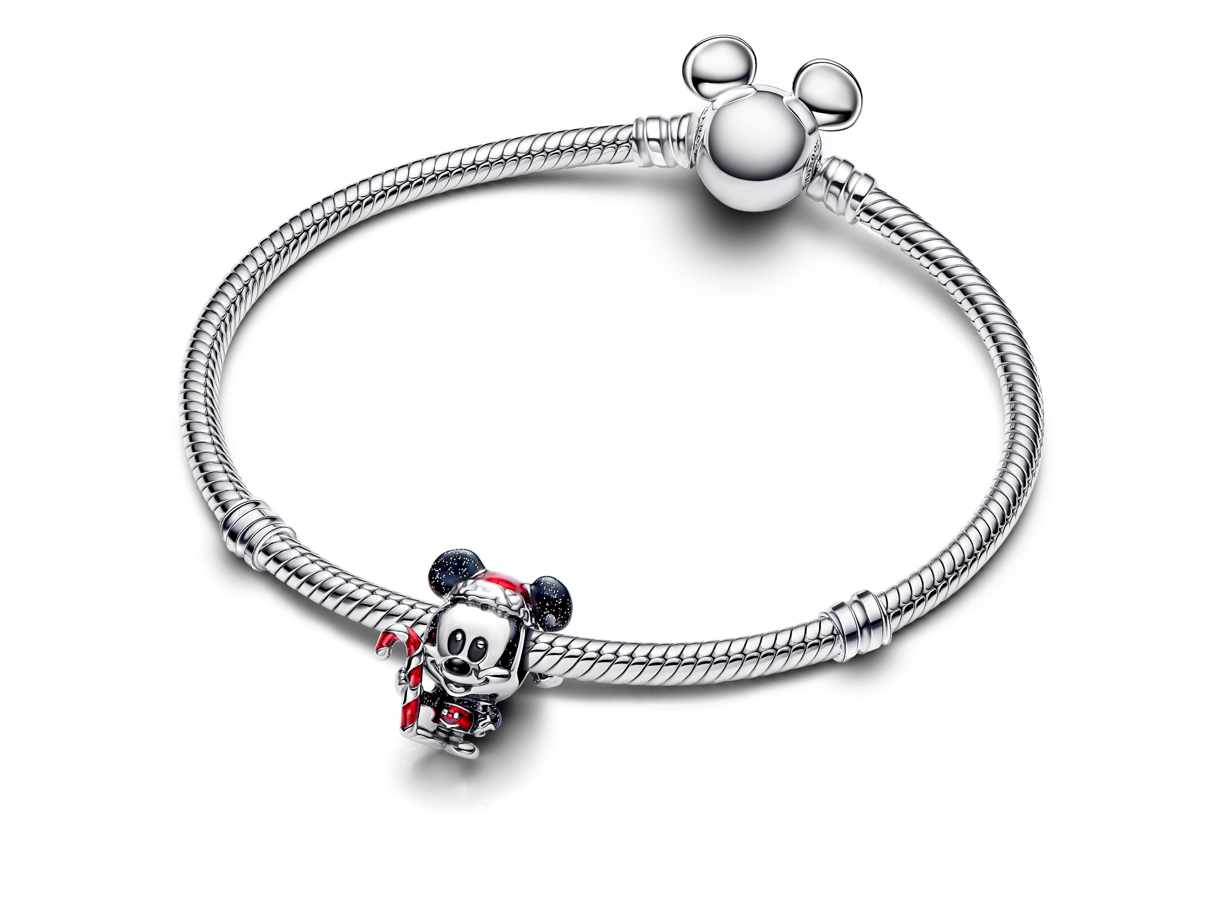 Komm in Weihnachtsstimmung mit Disneys Micky Maus. Dieses Charm aus Sterling-Silber trägt einen Weihnachtsmannhut und hält eine Zuckerstange. Es ist mit leuchtender Emaille und filigranen Details verziert – ein Weihnachtssymbol der Freude.