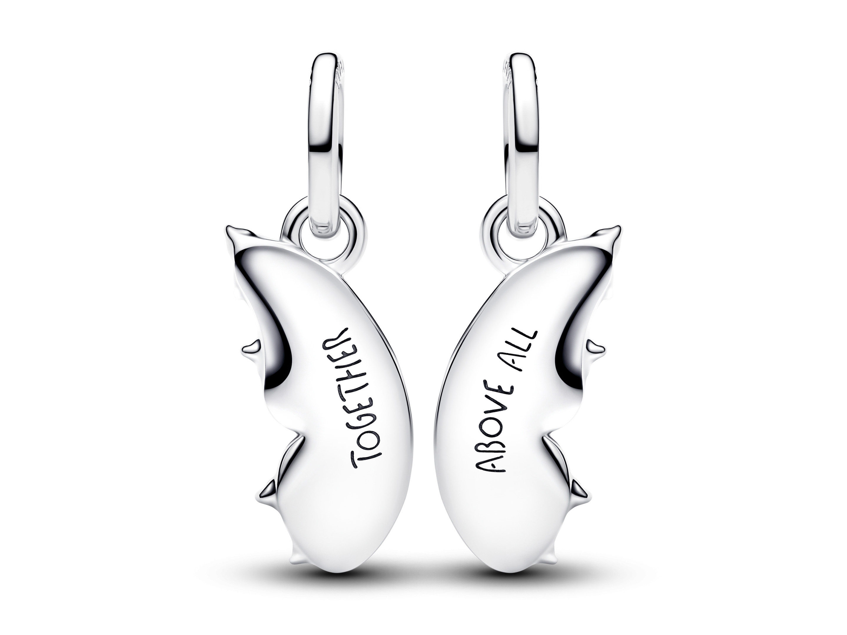 Zum Teilen gemacht, zum Strahlen designt. Dieses teilbare Schmetterling-Charm aus Sterling-Silber trägt auf der Vorderseite funkelnde Cubic Zirkonia und schimmernde blaue Emaille und auf der Rückseite jedes Teils die Gravur - TOGETHER ABOVE ALL -