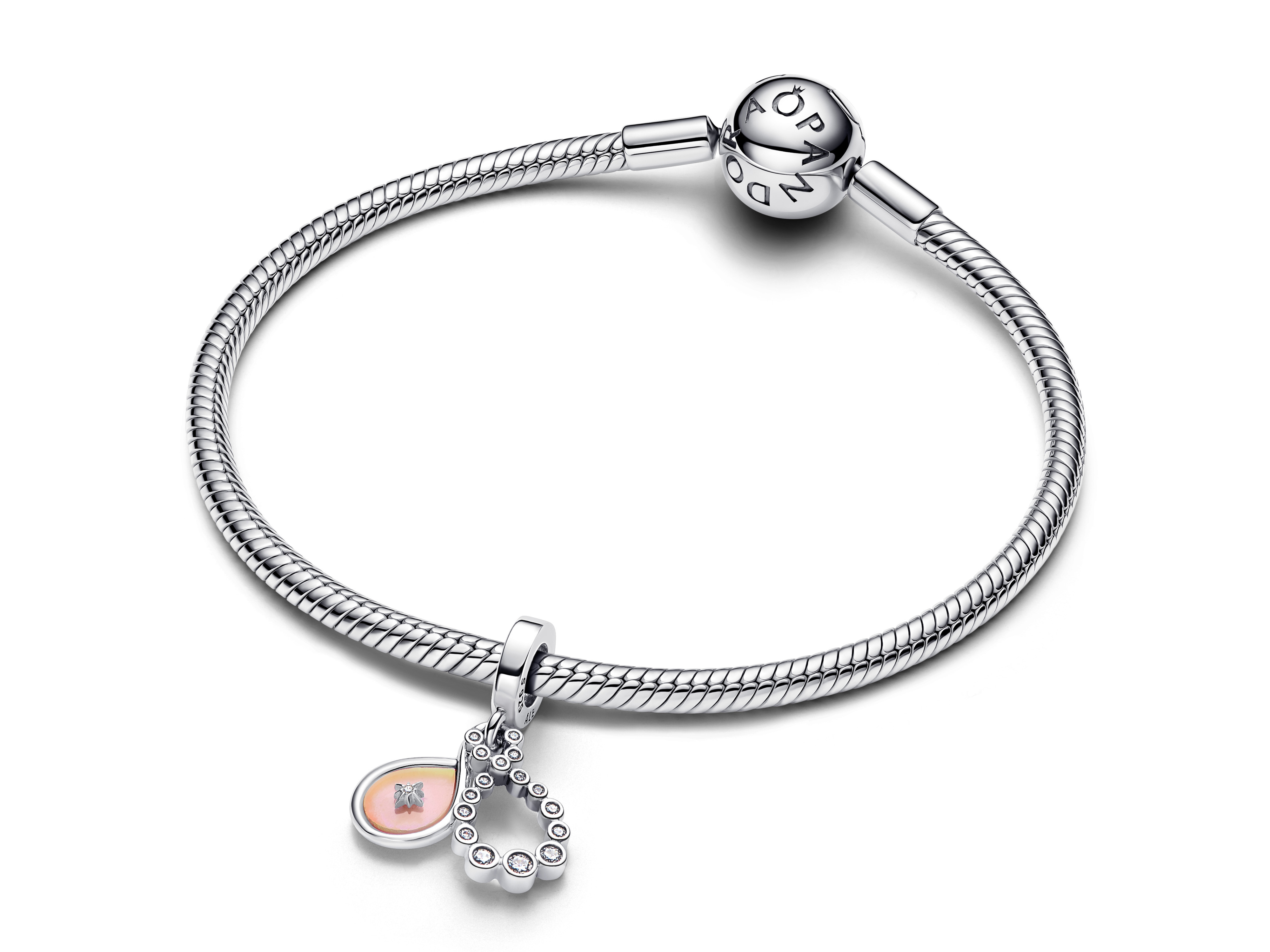 Dieser doppelte Charm-Anhänger aus Sterling-Silber funkelt mit klaren Cubic Zirkonia auf dem einen Charm und im Labor gezüchtetem Opalharz auf dem anderen. Trage ihn mit der Gravur - LOVE TIMES INFINITY - als Erinnerung an ewige Verbindungen.